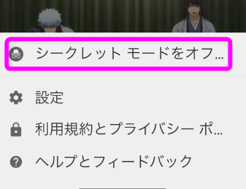 「シークレットモードをオン」という項目があるのでここをタップします。