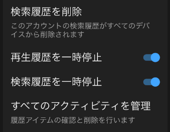 ただし、それまでの再生・検索履歴は残ったままなので、上に紹介した方法で再生・検索履歴も削除しておいてください。