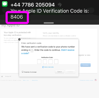 「Phone number ending in 00」は、SMSで認証メールが送られてきます。