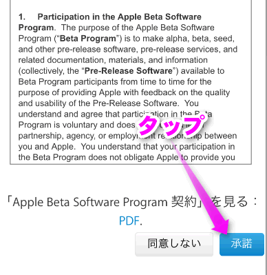 iPhone上からApple Beta Software ProgramをSafariで表示させます。
