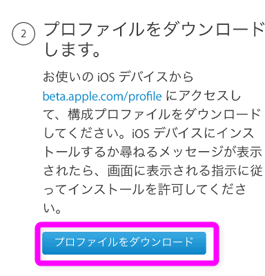 「プロファイルをダウンロード」というボタンがあるので、ここをタップします。