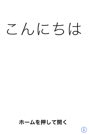 お馴染みの「こんにちわ」画面になるので、ホームボタンを押します。