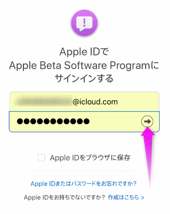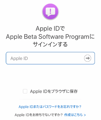 Appleのサイトの bate.apple.com/profile を開きます。