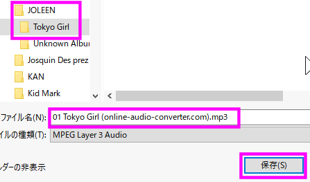 これで「m4a」ファイルから「mp3」ファイルに変換できました。