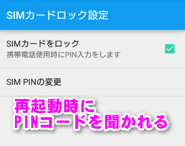 PINコードをSIMに設定(SIMカードをロック)すると、SIMを抜き取って他のスマホなどで使おうとしたり、スマホを再起動するとこのPINコードを正しく入力しないと電話をかけられなくなります(スマホ自体は使える)。