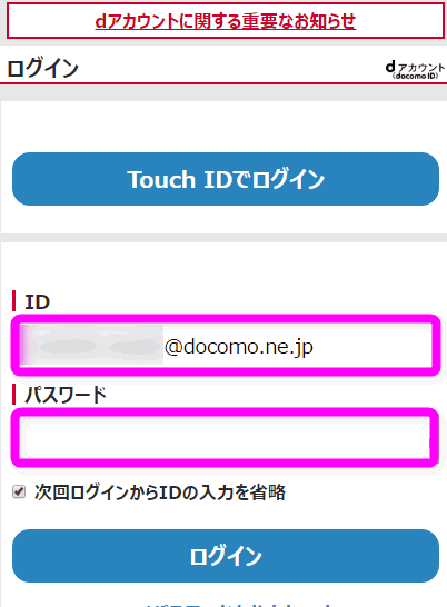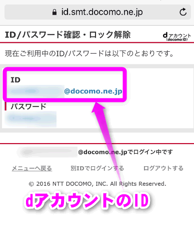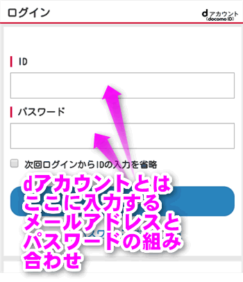 IDはたいていdocomoのメールアドレスなのですが、docomo以外のユーザーでも使用できるので、必ずしもIDはdocomoのメールアドレスではありません。