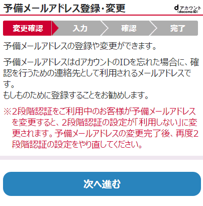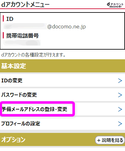 dアカウントには予備メールアドレスを登録することが出来ます。何らかの原因で、IDが使えなくなったりパスワードをわすれた場合、予備メールアドレスを利用してIDを調べたりパスワードを変更したりできるので、何かと便利です。