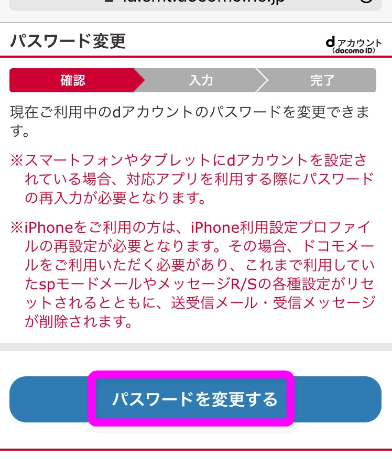 パスワードを変更した場合、すぐに「ドコモメール」のパスワードを変更してください。古いパスワードを使用したままだと、dアカウントがロックされてしまう可能性があります。