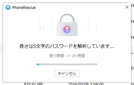 たった4桁のパスワードでも解析には1時間12分かかると表示されました。
