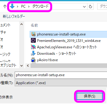 適当な場所(ダウンロードフォルダなど)にダウンロードします。