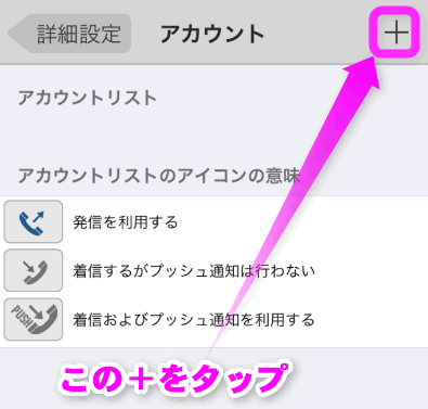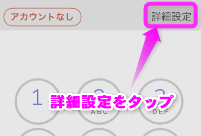 ダイアルの画面の右上にある「詳細設定」をタップし、「SIPアカウント」をタップすると、新たにアカウントを追加することが出来るんです。