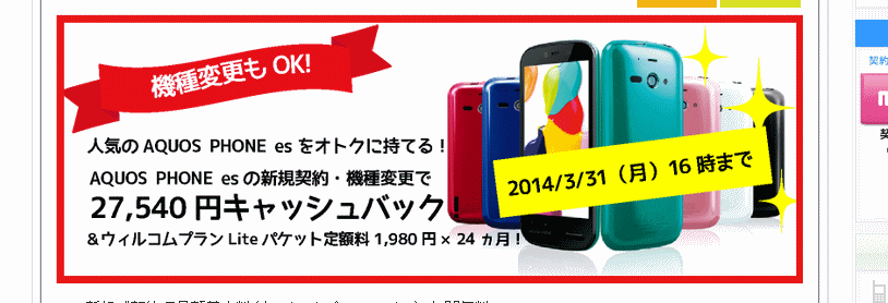 最新の詳しいキャンペーンと価格は、ウィルコムとイー・モバイルのサイトで確認して下さい。
