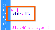 先ほどの■色で囲った部分は、「H1」タグで囲まれた部分で、ここのCSSは、このように
