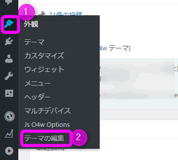 WordPressの管理画面から「テーマの編集」を開きます。