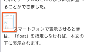 スマートフォンで表示させるときは、「float」を指定しなければ、本文の下に表示されます。