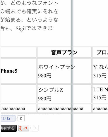 iPhoneで表示させると、ページ全体は横にスクロールできませんが、テーブルの部分だけ横にスクロールできるようになります。