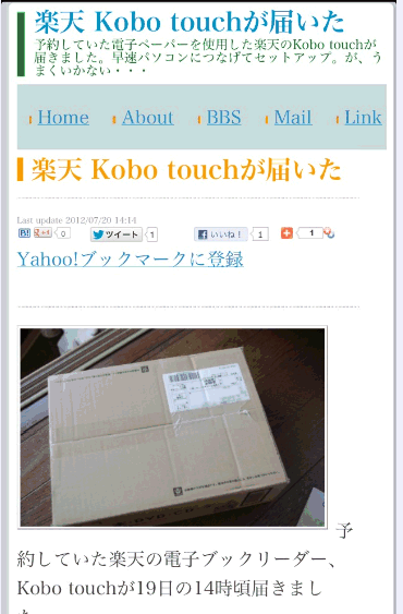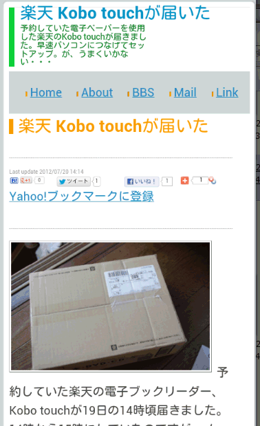 スマートフォン用の表示は、「横:320ピクセル」が標準なのですが、ページ幅を320ピクセルに合わせてしまうと、今まで投稿した画像やテーブルタグなどの一部が、460ピクセルぐらいで作成してあるので、320ピクセルで表示した場合、横にはみ出てしまうんです。(後で例を紹介します)