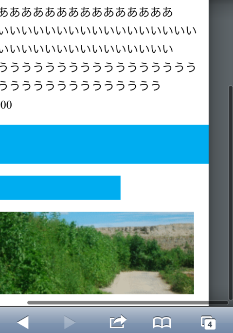青の画像の幅を320pxにすると、このようにスクロールしないと全体を表示できないようになりました。