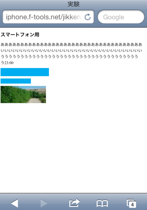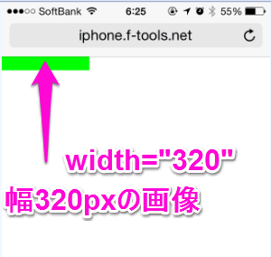 さて、では、width=device-widthと指定し、幅320pxの画像を貼れば、画面にぴったりの画像を表示させることが出来るのでしょうか?