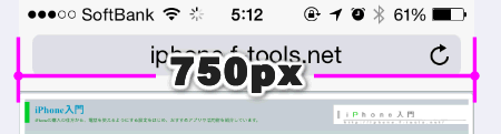iPhone6のディスプレイの解像度は、横750ピクセルです。ところが、