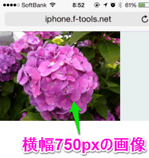 iPhone6のディスプレイの横幅と同じ、750ピクセルの画像を表示させると、このように右横に空白ができてしまいました。