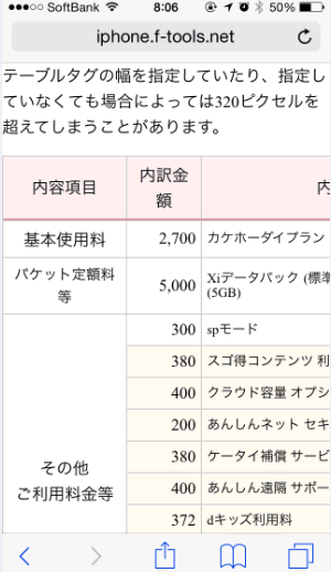 width="device-width"にして、テーブルの幅を500ピクセルにして、iPhoneで表示した場合、このようにはみ出てしまいました。