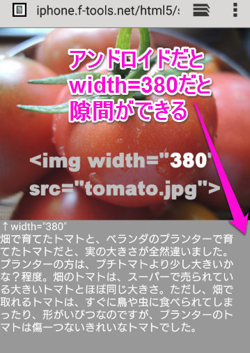 ↑iPhoneでもアンドロイドでも画像の隣に隙間ができる - 画像のwidthを380px