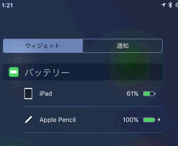 ここにiPadとApple Pencilのバッテリー残量が表示されているはずです。