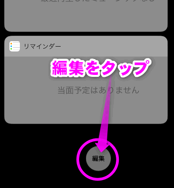 もし、バッテリーという項目自体がない場合は、ウィジェットの一番下にある「編集」をタップします。