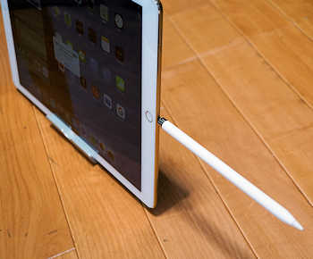 ではどうやって充電するかというと、iPad Proの上端にある「磁気コネクタ」にApple Pencilをくっつけるだけ。ワイヤレス充電なのでくっつけるだけで充電できます。