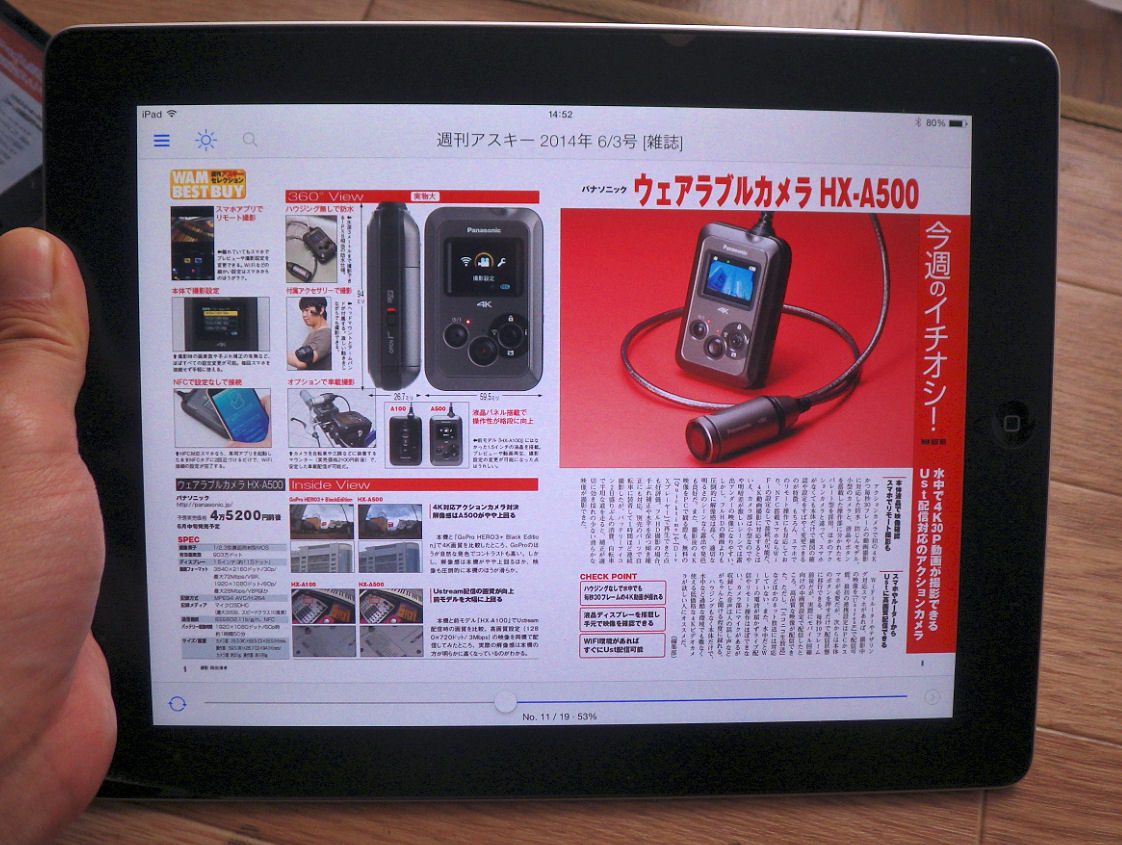 さて、雑誌を電子書籍で読む場合、大事なのはディスプレイの大きさだ。とわかりました。9.7インチのiPadは、雑誌をストレス無く読むのにはギリギリのサイズだと感じました。が、まだ別の問題をはらんでいます。