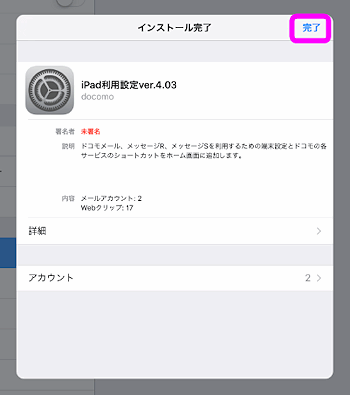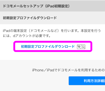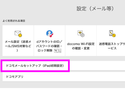 「ドコモメールセットアップ(iPad初期設定)」という部分をタップします。