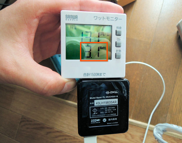 まずは、アンドロイド用の急速充電器にiPadを繋いで計測。