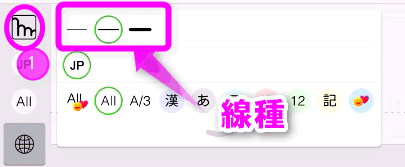 鉛筆風やサインペン風の線種が選択できますが、線の太さは調節できません。