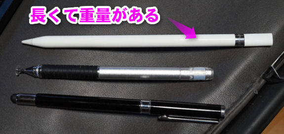 Apple Pencilをはじめて使った瞬間から感じたのですが、とにかく長くて重いです。