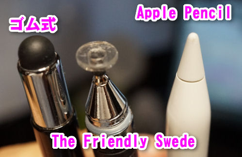 ①が「ゴム式」。②が「ディスクスタイラス ( The Friendly Swede )」。③が「Apple Pencil」です。