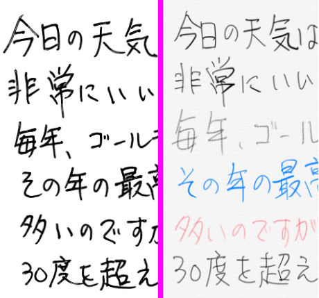 続いて紙に書いた手書きの文章とiPad Proの手書きを比較してみました。