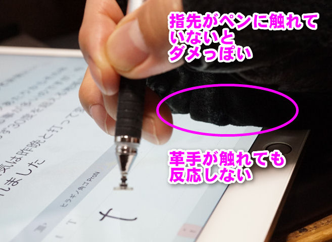動画でも紹介しましたが、iPad Pro以外のiPadでも指がむき出しになっている革手袋をはめると、擬似的なパームリジェクションになります。