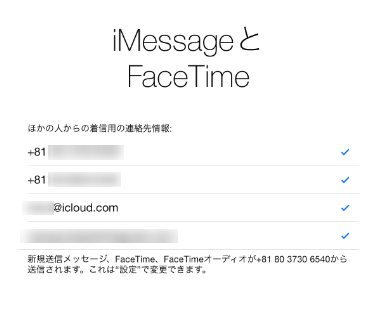 iMessageとFaceTimeの宛先として結びつける電話番号かメールアドレスを選択します。