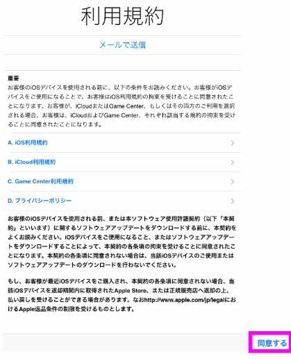 「利用規約」が表示されるので、目を通したら画面右下の「同意する」をタップします。