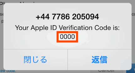 パソコンのiTunesの画面にも、本人確認用の4桁の入力欄が表示されるので、届いた4桁の一時確認コードを入力します。