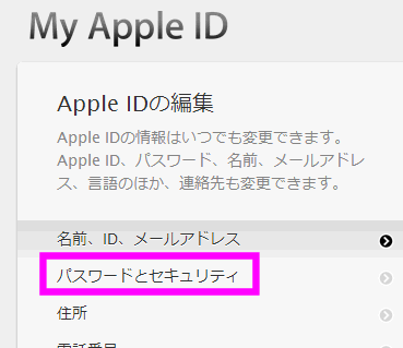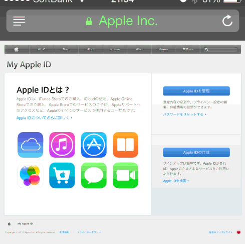 まずは、iPhoneかiPadのようにスマホかタブレットでApple ID管理画面、My Apple IDを表示させます。