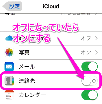 iCloudをオンにすると、自動的に連絡先をネット上に保存します。