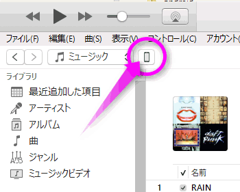メニューの下辺りにiPhoneのアイコンが表示されるので、ここをクリックします。
