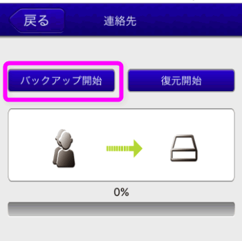 「写真・連絡先のバックアップと復元」というボタンをタップします。