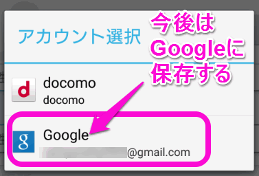 何が違うかというと、このままずっとドコモのアンドロイドを一生使い続ける場合は、「docomo」のままでいいのですが、iPhoneや他社のアンドロイドに移動した場合、「docomo」に保存したデータはすんなり移動できません。