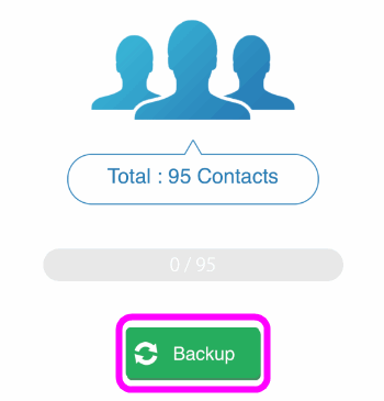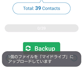 連絡先に登録してあるデータを読み込むので、「Backup」をタップします。