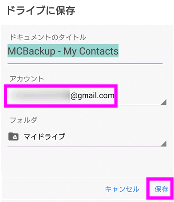Gmailのアカウントに保存するには、Gmailのアカウントをタップします。