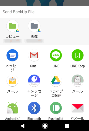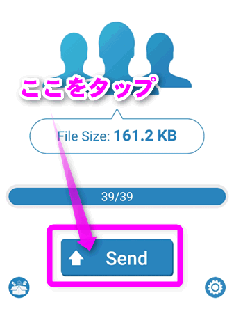 「Backup」の部分が青い「Send」に変わるので、ここをタップします。