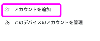 「アカウント」の部分(■色の四角で囲まれている部分)に表示されているメールアドレスが、Googleアカウントと呼ばれるものです。